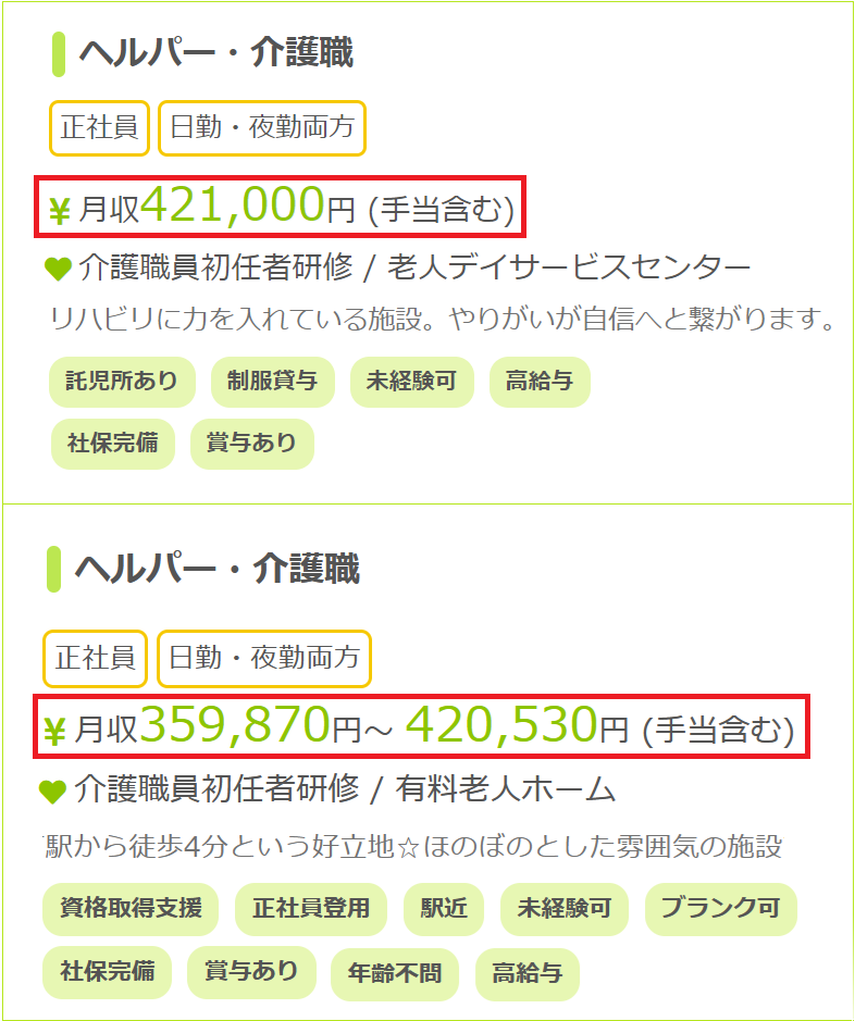 転職経験の少ない介護職の方は、「今よりいい職場は見つからないのでは?」と漠然とした不安が沸くかもしれませんが、実は大手介護転職サイトの「レバウェル介護」などを検索すると多数の好条件求人が出ています。